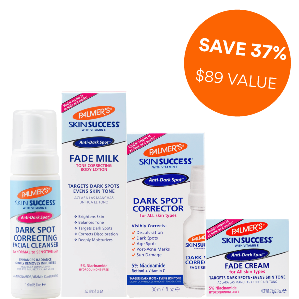 Palmer's® Skin Success Anti-Dark Spot Fade Cream visibly improves dark spots, age spots, post-acne scars and uneven skin tone, and is clinically proven to deliver visible results in as little as 2 weeks!* *May take up to 8 weeks.