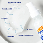 Vitamin C: Known for its brightening properties, Vitamin C stimulates collagen growth, the building block of skin, while clearing scars and marks. Vitamin C is a powerful antioxidant and multi-talented active addressing almost every skincare concern from acne to UV damage.