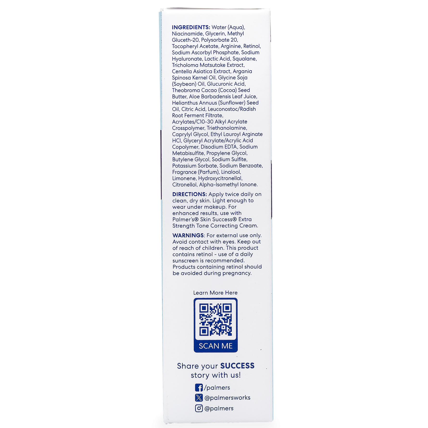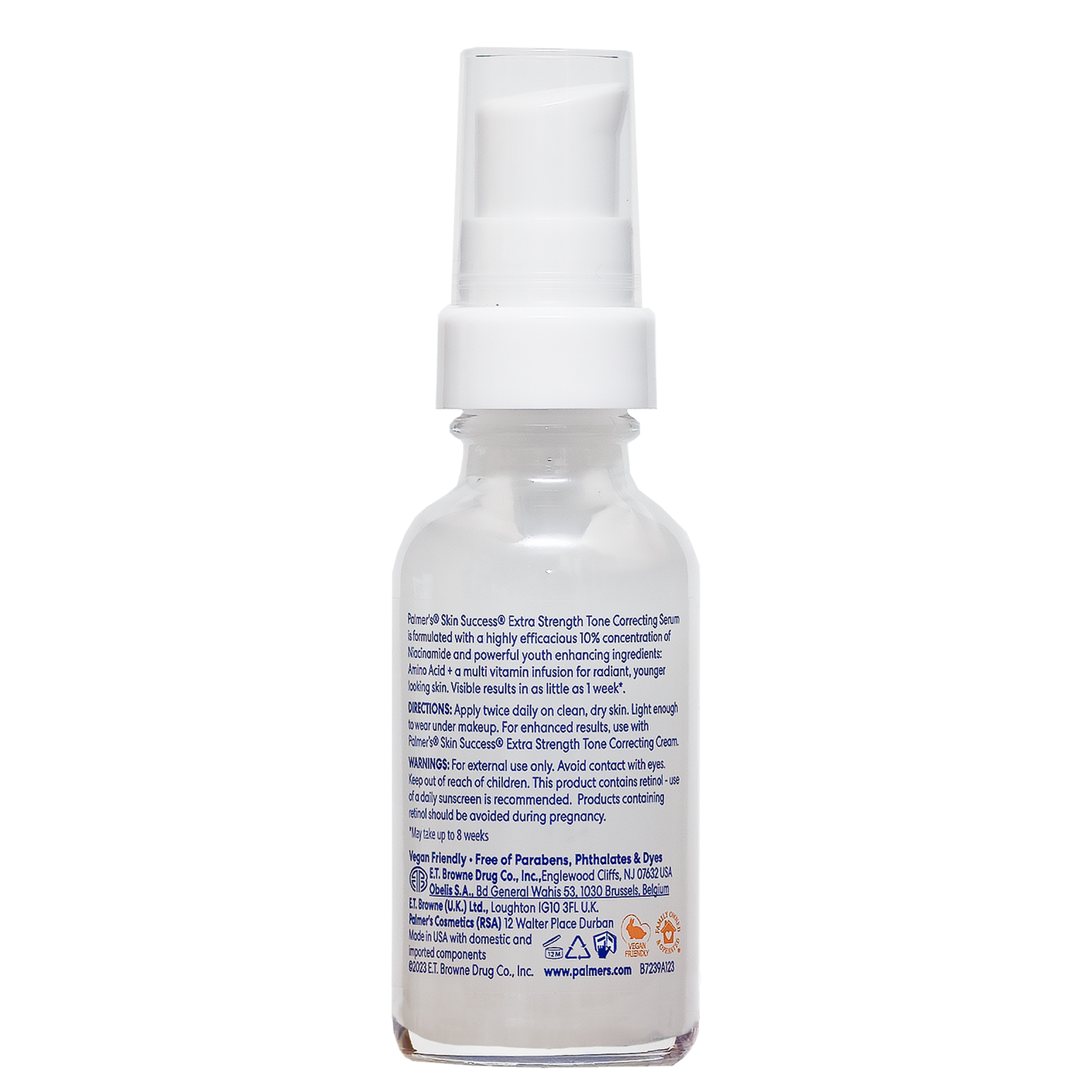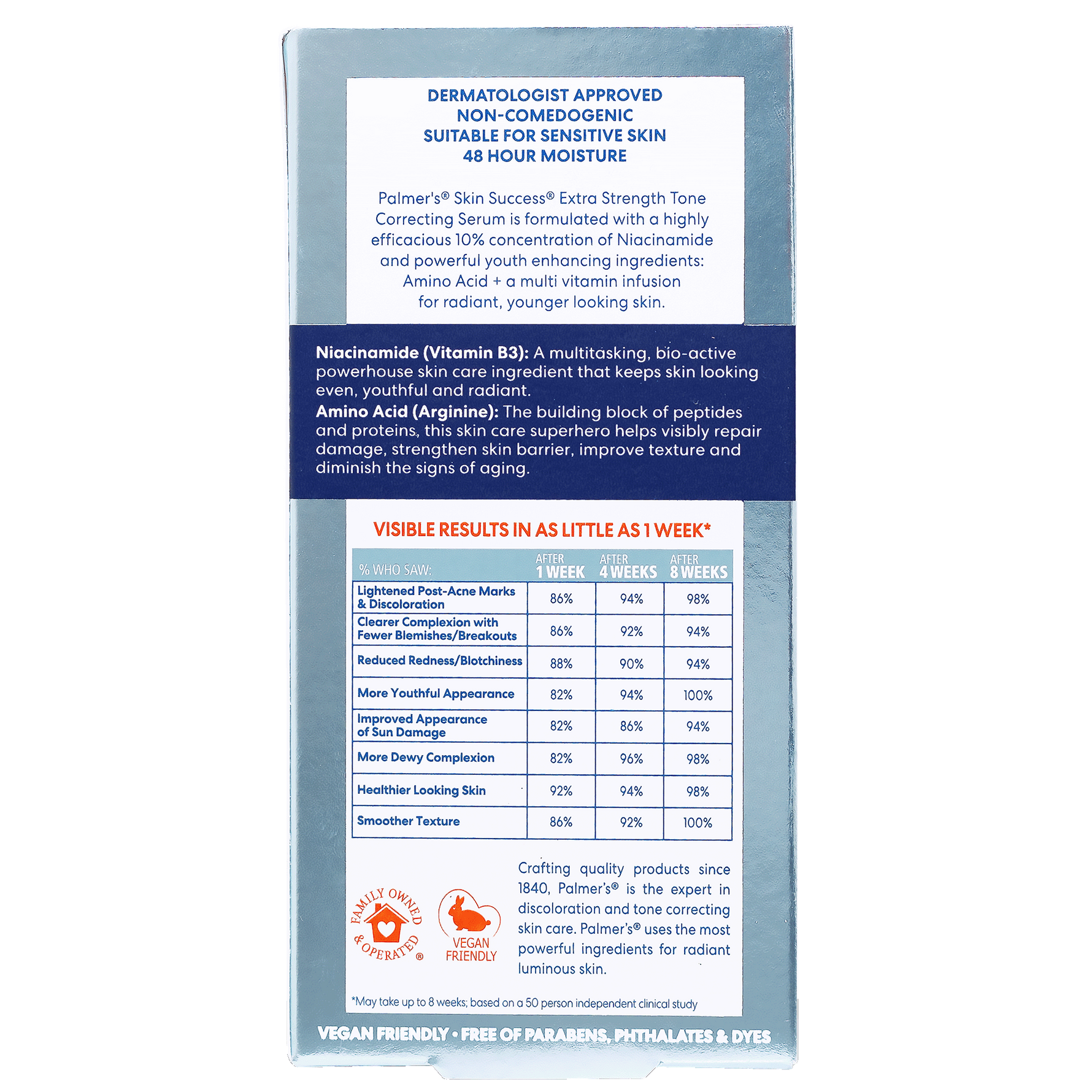Unit price / perPalmer's® Skin Success Extra Strength Tone Correcting Serum is formulated with a highly efficacious 10% concentration of Niacinamide and powerful youth enhancing ingredients: Amino Acid + a multi vitamin infusion for radiant, younger looking skin.