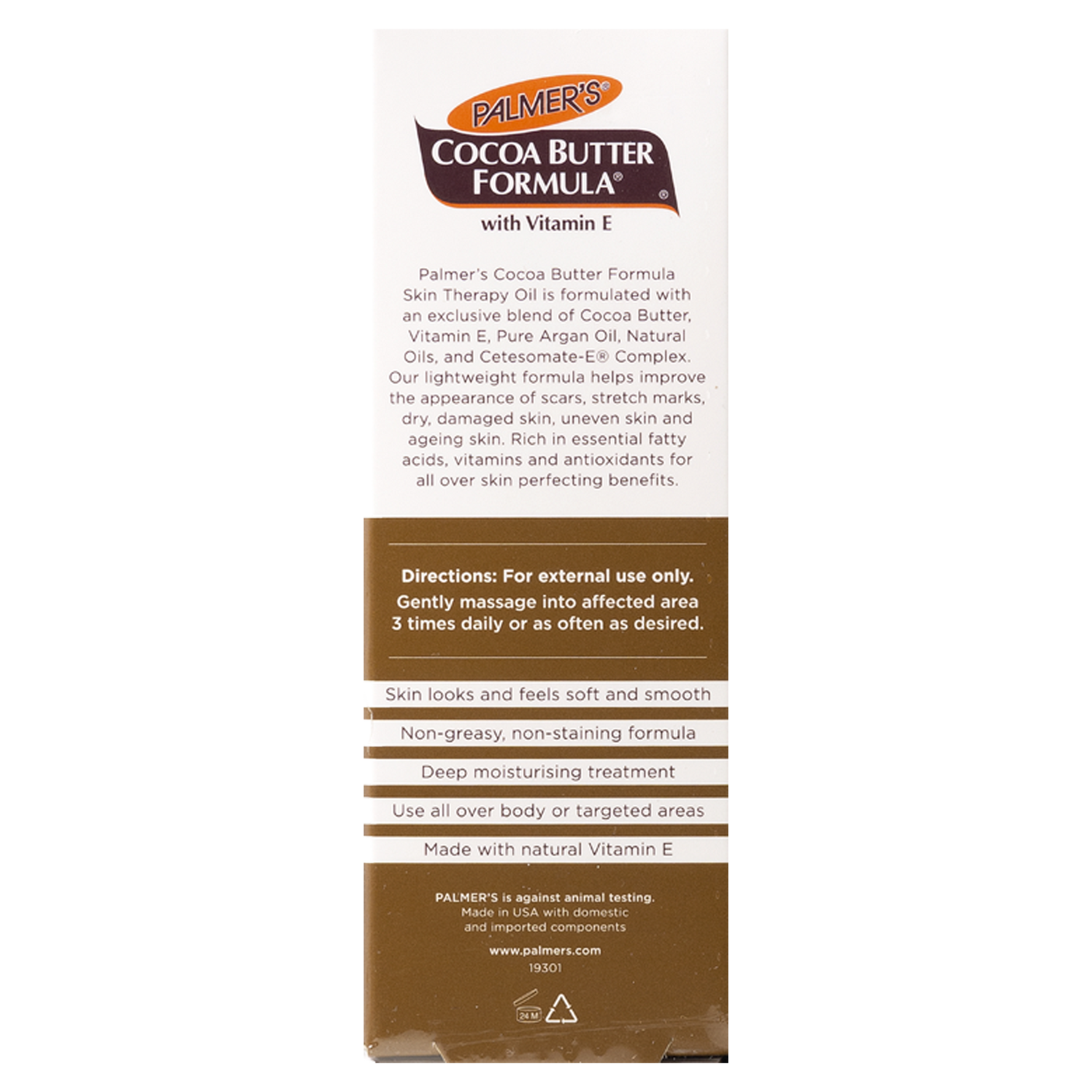 Unit price / perPalmer's® Cocoa Butter Formula Skin Therapy Oil is a lightweight formula, which helps to improve the appearance of scars, stretch marks, dry, damaged skin, uneven skin and ageing skin.