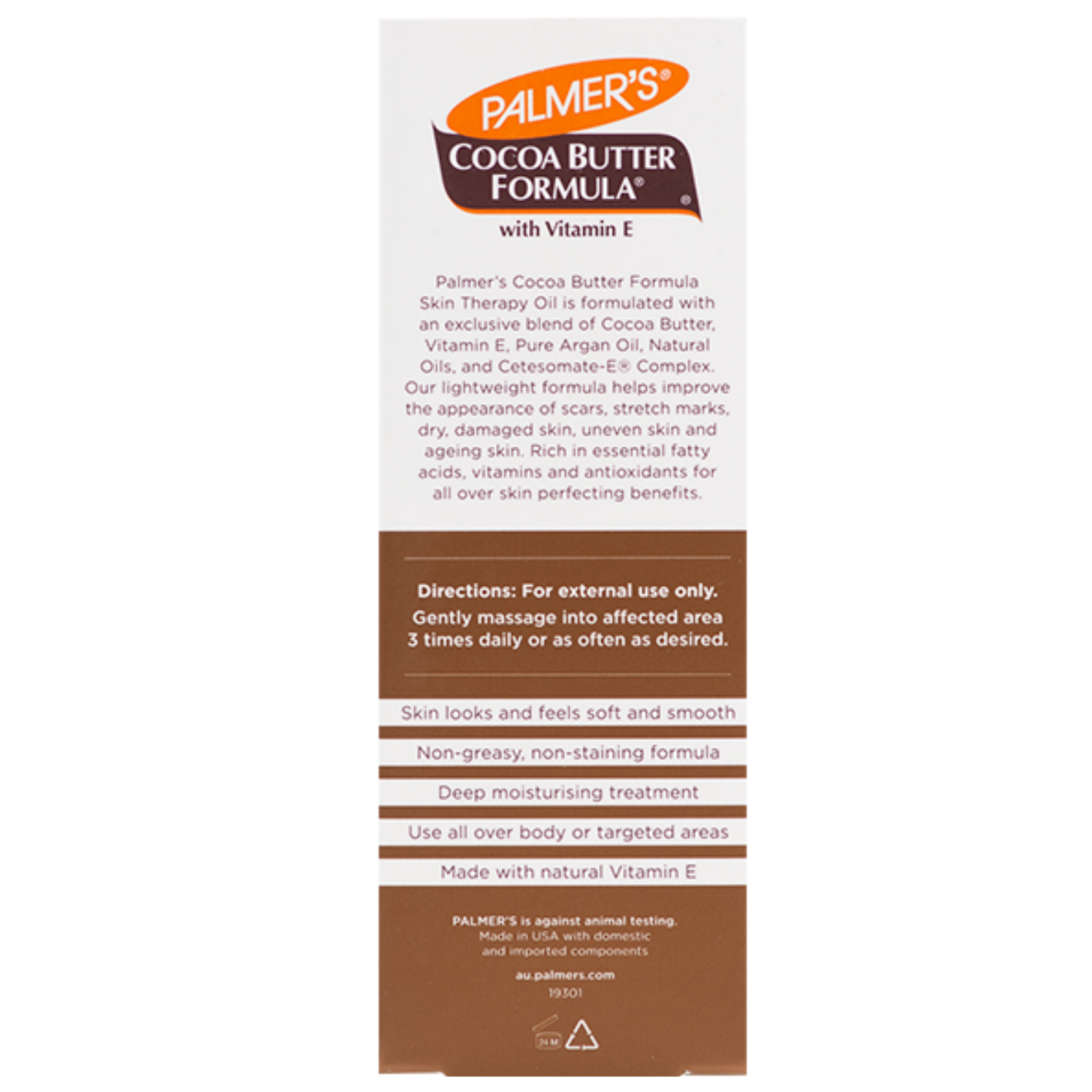 Palmer's® Cocoa Butter Formula Skin Therapy Oil is a lightweight formula, which helps to improve the appearance of scars, stretch marks, dry, damaged skin, uneven skin and ageing skin.