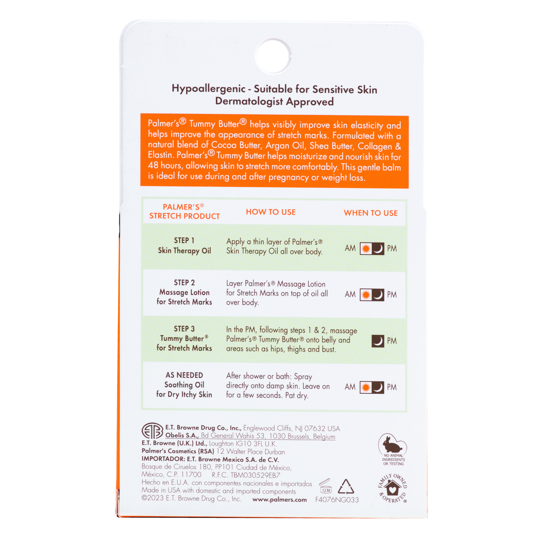 We recommend that you use our products twice a day, morning and evening, to help keep skin tone soft and smooth while helping to visibly improve skin's elasticity. With consistent use, skin stays supple and firm. Palmer's combines only the most proven ingredients to ensure skin looks and feels healthy and soft.