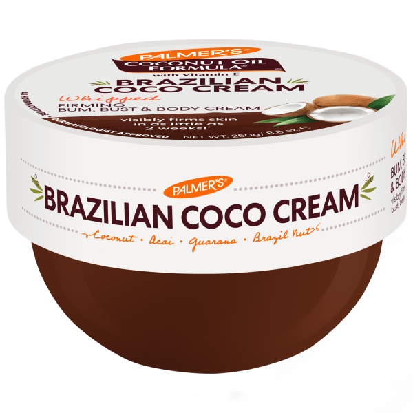 Palmer's® Coconut Oil Brazilian Coco Whipped Body Cream is clinically proven to visibly firm bum, bust, belly & more! Formulated with a powerful blend of nourishing & firming ingredients, including rich hydrator Coconut Oil, powerful Brazilian super ingredients Guarana and Açai, plus Collagen & Elastin. Leaves skin feeling tight and toned with a decadent tropical scent.