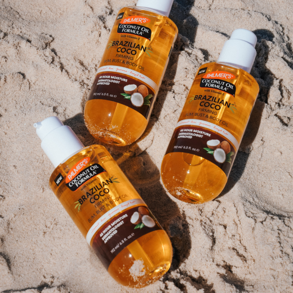 Transform your skincare routine with Palmer's® luxurious Brazilian Coco Firming Body Oil, crafted to visibly smooth, tighten, and hydrate skin. Infused with the powerful benefits of Coconut Oil, Acai, Guarana and Brazil Nut, this nourishing oil targets areas such as bum, bust, belly, thighs and arms for visibly firmer, radiant skin with an indulgently creamy coconut scent! Indulge in this lightweight yet intensely hydrating oil that absorbs quickly, leaving no greasy residue. Perfect for daily use, it helps to improve skin elasticity, reduce the appearance of cellulite, and promote a smoother, more toned appearance from head to toe.