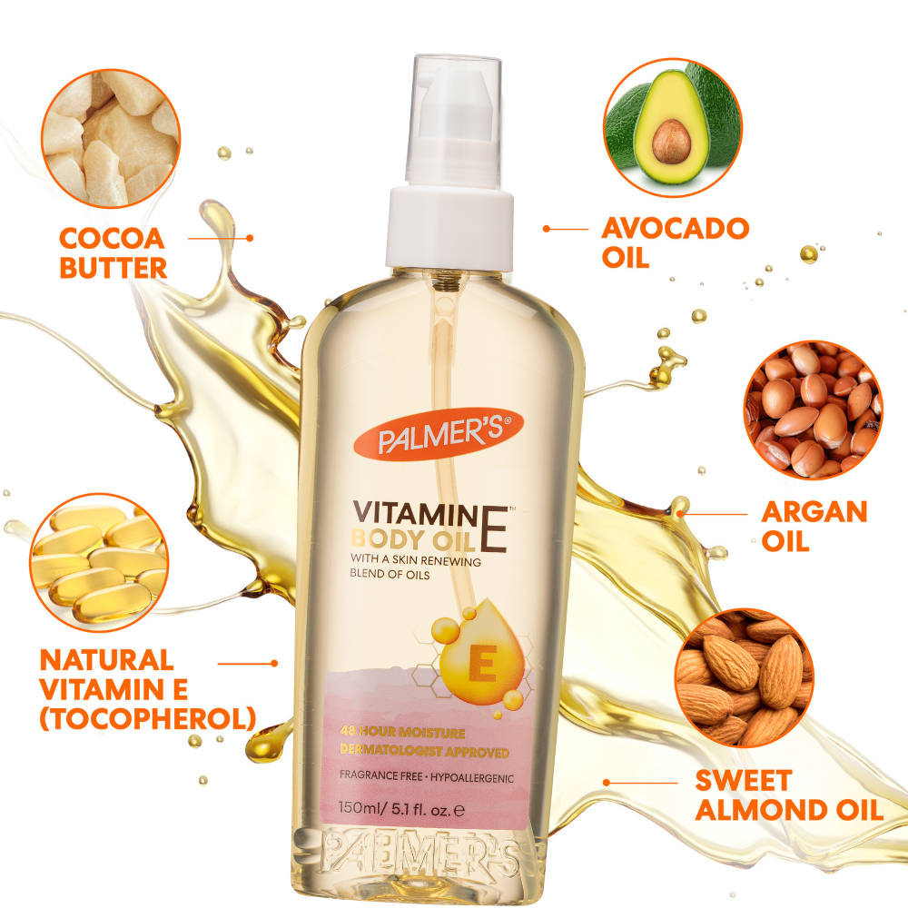 Unit price / perPalmer's® Natural Vitamin E Body Oil revitalises and renews dry, damaged skin. Crafted with skin-nourishing Vitamin E and Cocoa Butter. Instantly absorbs for healthier, younger looking skin.