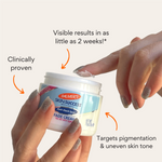 97% of women said the product helped lighten dark spots, 91% of women said it visibly improved discolouration,100% said it improved clarity, and 90% said it left them with brighter, more radiant skin.**Based on a 200 person independent clinical study.